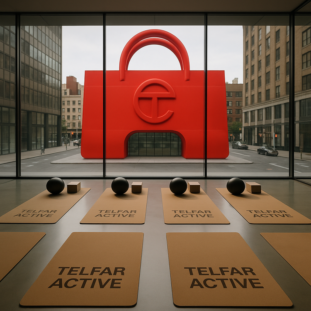 Movement as identity. Community as luxury. A speculative brand activation where TELFAR expands into premium activewear and immersive movement spaces — keeping the same DNA of inclusivity, culture, and cultural relevance. Imagine a pop-up shaped like a giant Telfar bag — inside, a luxe Pilates studio. Guests train dressed in TELFAR ACTIVE pieces, stepping into a world built for all bodies in motion. Movement becomes culture. Community becomes luxury. Fashion becomes function.